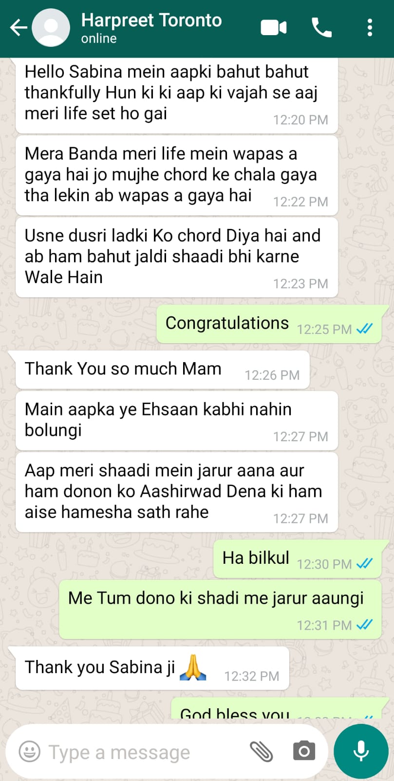 Disclaimer: There are no guarantees that every person using this service will get their desired results for sure Astrological results depend on a lot of factors and the results may vary from person to person.