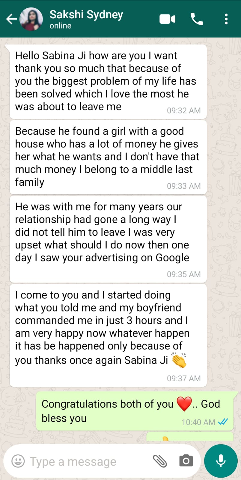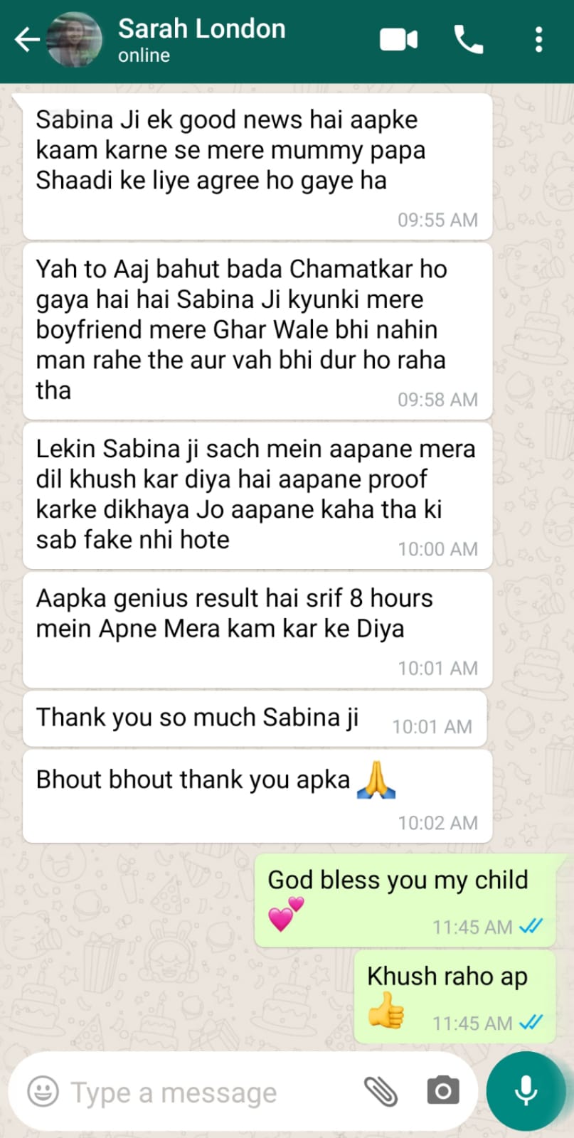 If you are facing any problem with your love or you want to, wife, girlfriend, boyfriend, boss, love back, love marriage, sister-in-law, mother in law then famous love specialist Begum Sabina Ji Please call He will solve this matter very fast.